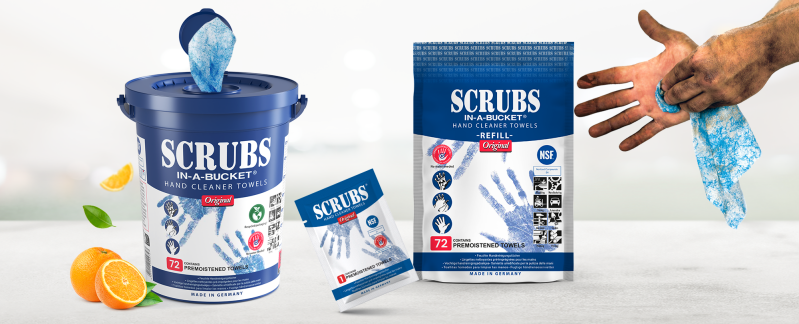 SCRUBS® reinigingsdoeken zijn zeer efficiënte reinigingsdoeken voor handen, gereedschap en machineonderdelen. SCRUBS® verwijderen gemakkelijk zware vetten, smeermiddelen, kleefstoffen, oliën, teer, bitumen, inkt, verf, klei, koolstof, grafiet, grasvlekken, was en nog veel meer zonder water te gebruiken.